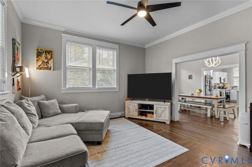 This stunningly renovated 3-bedroom, 1.5-bath Craftsman gem nestled in the heart of Colonial Heights. Originally built in 1928, this home masterfully merges timeless character with modern comforts. Upon entering, you'll be greeted by a spacious open floor plan bathed in natural light, showcasing impressive 10-foot ceilings and beautifully refinished hardwood floors. The contemporary kitchen features elegant quartz countertops, a center island, and stainless steel appliances-ideal for entertaining guests or enjoying everyday meals. Significant upgrades include newer windows, HVAC, electrical systems, and stylishly updated bathrooms, ensuring peace of mind and energy efficiency. Step outside to discover a generous lot adorned with mature trees, a charming front porch, and a detached 2-car garage that offers plenty of storage space. An unfinished basement presents even more opportunities for additional storage or future expansion. Conveniently located near Fort Lee, shopping, schools, and parks, this move-in ready home is the perfect blend of classic charm and modern living.